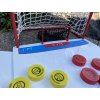 Két palánk kapukkal, 8 koronggal, és kezdődhet a móka nem csak a hokisok számára. Nagyszerű játék egy baráti társaság számára, mint például a Cornhole jégkorongos változatában...