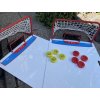- 2x tábla (76 x 61 cm) kapukkal (kis kapu 22 x 12 cm és nagy kapu 55 x 26 cm). A korong remekül megy a táblán.