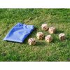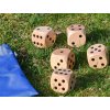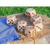 - 6 wooden game dices (size 5,4x5,4x5,4 cm), bag.