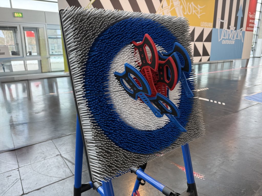 - consisting of hundreds of 5 centimetre bristles, designed to safely catch axes with every throw
