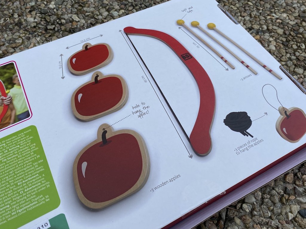 Kiváló és különösen biztonságos kialakítás. Egy puha golyó a nyíl végén, és a lehetőség, hogy az almákat egy asztalra helyezzük, vagy egy hurokkal egy fához kössük. Ez jó szórakozás lesz a gyerekeknek. Azonban még a játék során is emlékeztesse a gyerekeket, hogy az emberekre és az állatokra nemcsak hogy nem lőnek, de nem is céloznak.