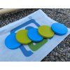 - 42 db fából készült festett kő - kék és zöld (egyenként 21db szín). Átmérője 6 cm.