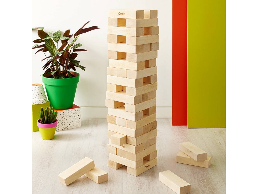 A kerti torony maxi változata biztosan lenyűgöző lesz. A torony 90 cm magas az alapkiépítésben, és igazán magas tornyot is építhetsz. Ideális két játékosnak vagy csapatoknak, ahol tetszőleges számú játékos felváltva játszhat. Egy vállalati rendezvény, egy parti a szállodában, vagy egy családi ünnepség, itt a játék nagyszerű változatosság lesz.