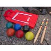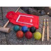 - A csomag tartalma: 6x bot (kalapács + fogantyú fából), 6x színes labda (új design a jobb tartósság érdekében), 2x céltábla/indítótű fából, 10 kapu, 1x zsák - narancssárga, szabályok.