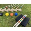 - A csomag tartalma: 6x bot (kalapács + fogantyú fából), 6x színes labda - fa, 2x céltábla/indítótű fa, 10 kapu, 1x hálózsák, szabályok.