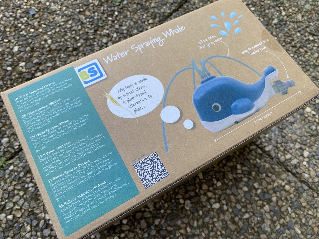 - Korpus tego wieloryba jest wykonany ze słomy pszenicznej, bio plastiku i łatwo podłącza się go do węża wodnego, co zapewnia szybką i prostą konfigurację.