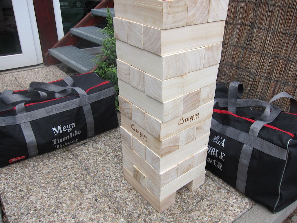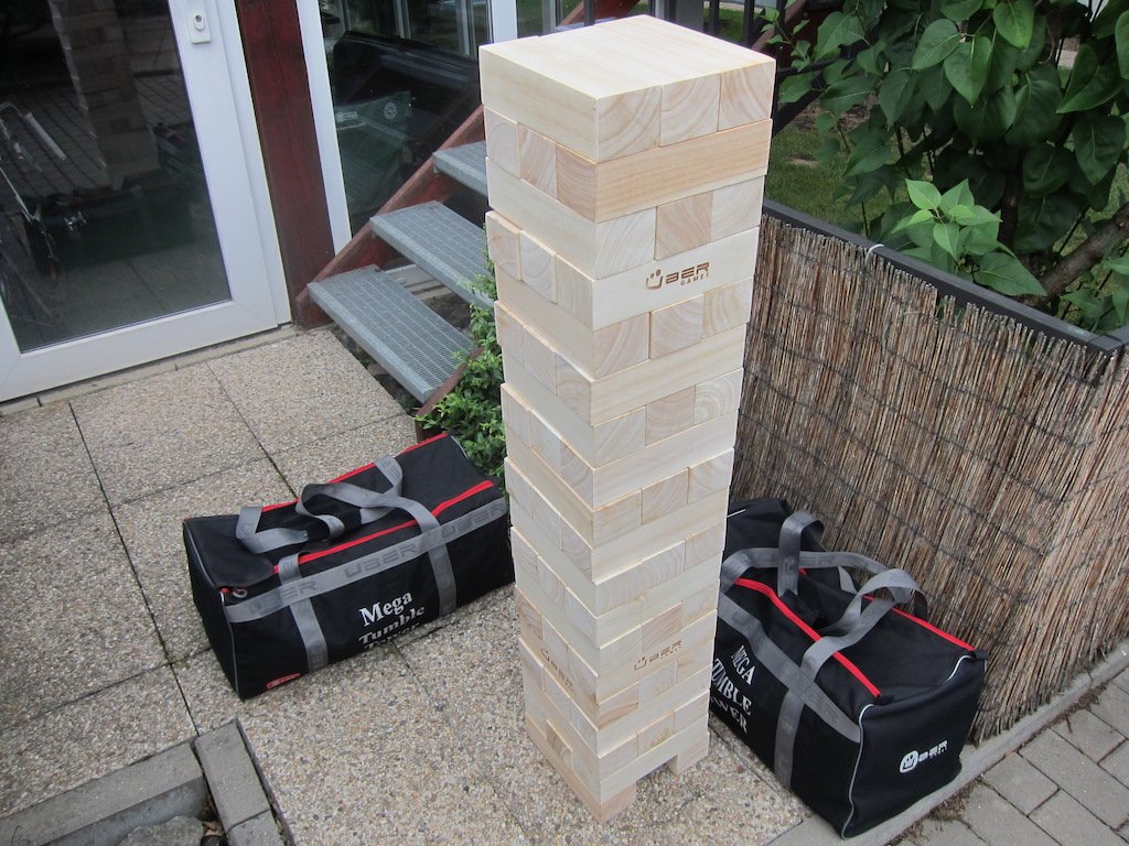 W ofercie mamy już jedną wieżę ogrodową, ale jej wykonanie naprawdę nadaje się raczej do ogrodu lub np. do domu na dywan. Ale to wykonanie, to już jest inna liga! Kostki są naprawdę duże, już podstawowe ustawienie na wysokość 120 cm to coś, no a jeśli weźmie się pod uwagę, że można zbudować wieżę na wysokość ponad 150 cm, to wtedy dopiero będzie prawdziwa wieża. W tej grze gracze będą się dobrze bawić na imprezie firmowej, mogą w nią grać również gracze w ogrodzie przy hotelu lub pensjonacie.