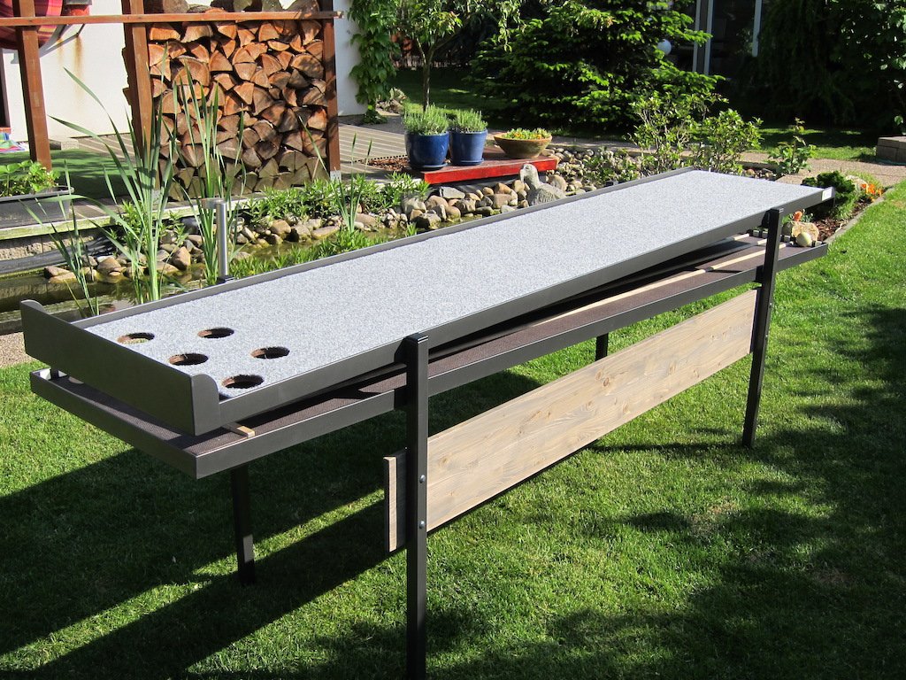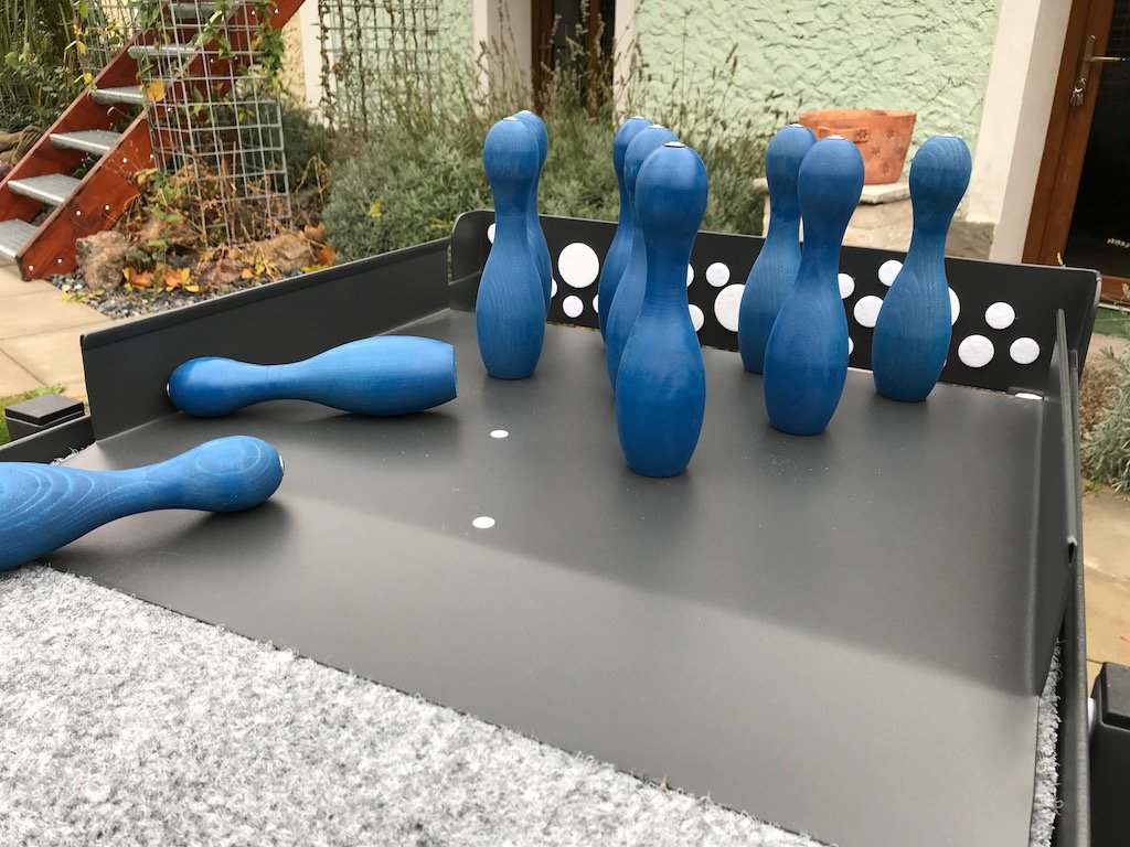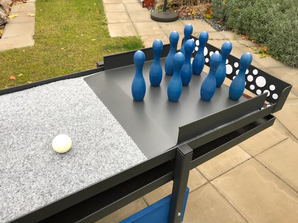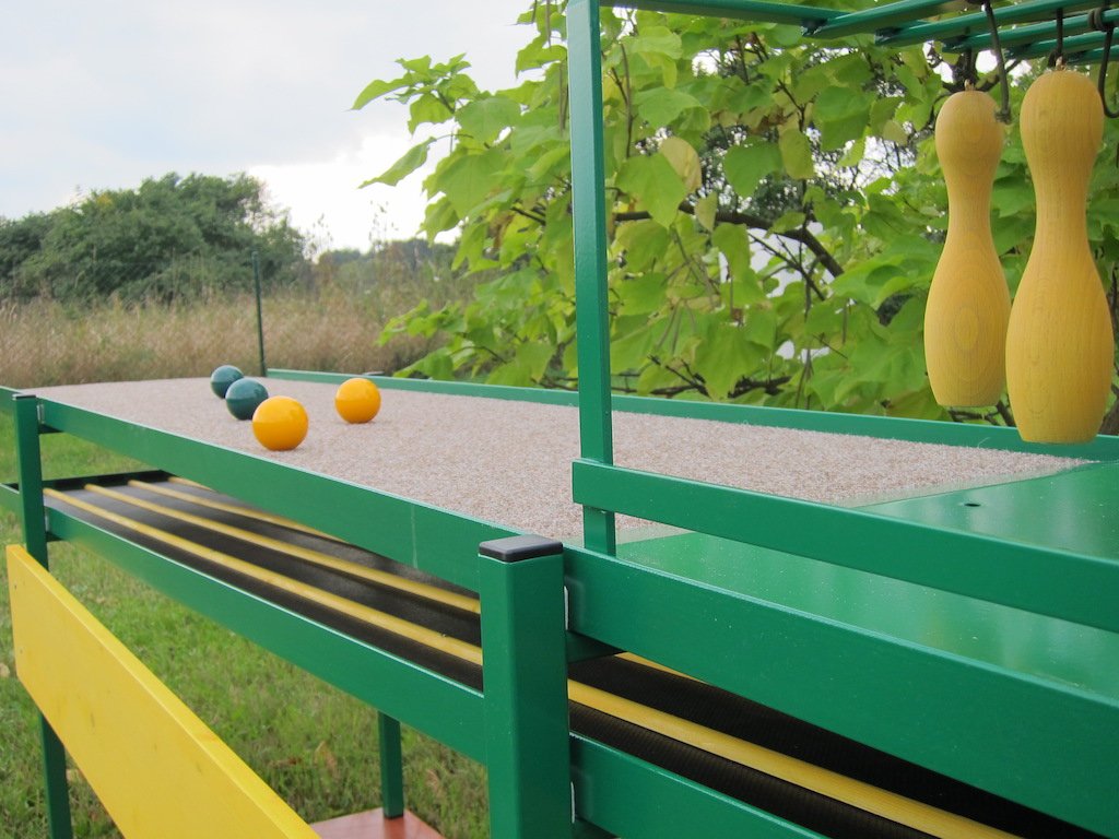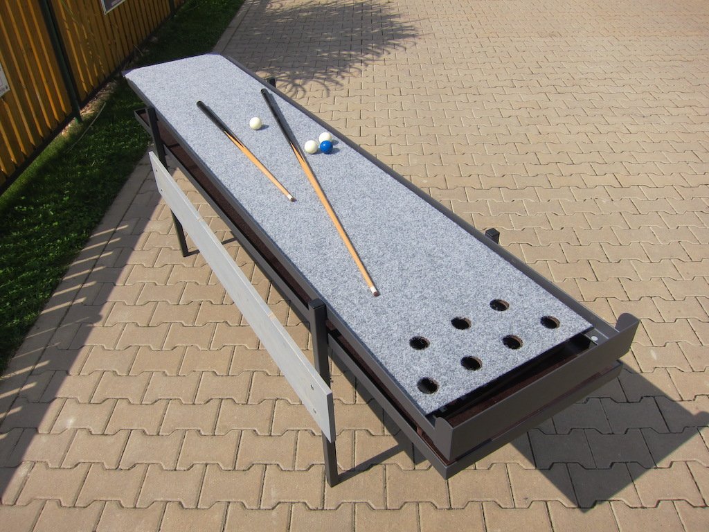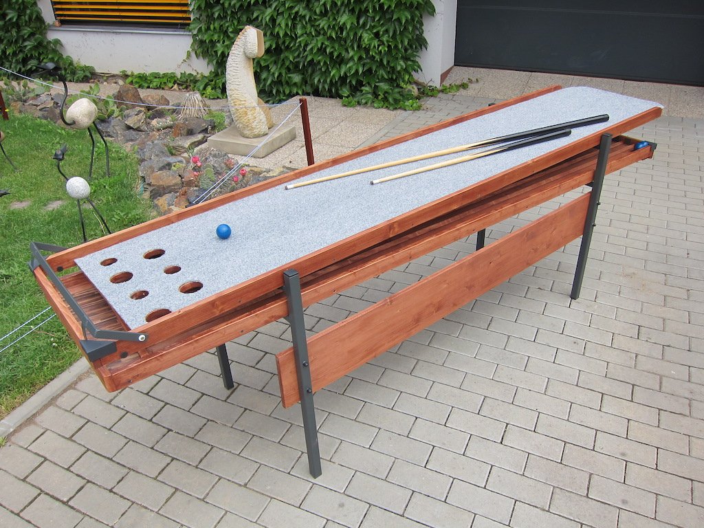 - Garden bowling: o versiune mai mică a jocului clasic de bowling jucat cu un tac de biliard. Versiunea simplificată - covorul este acoperit cu o tablă de joc pe care pot fi plasate popicele.