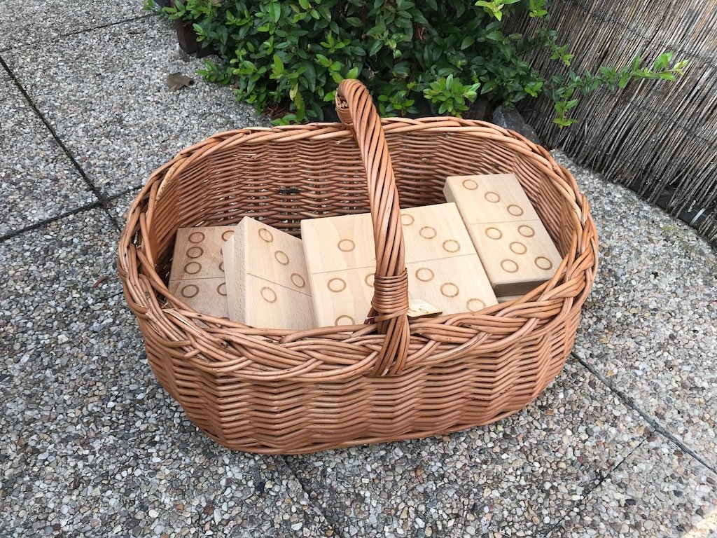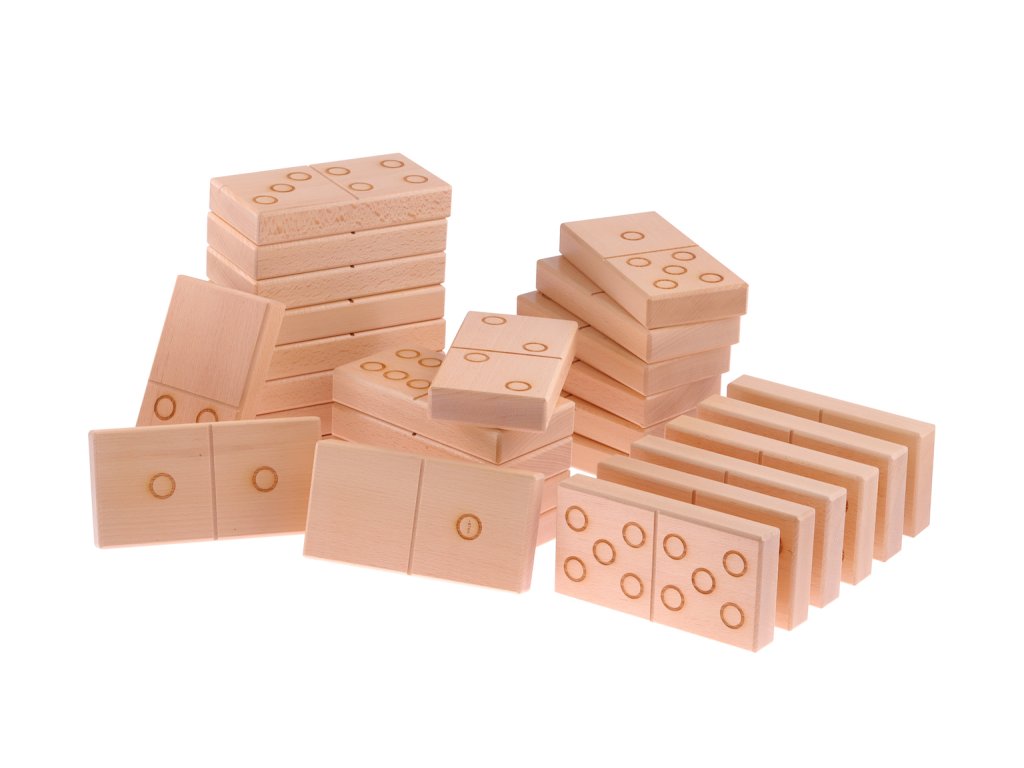Puteți alege din mai multe versiuni diferite ale Domino în e-shop-ul nostru. Versiunea STOA, pe care o producem direct, este cea completă cu puncte gravate și un coș mare din răchită. Sau versiunea BS Toys, livrată într-o cutie de carton cu o pungă de bumbac pentru transport ușor...
